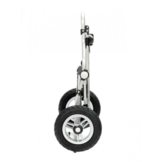 Poignée pliable / Piètement pliable / Arceau rabattable / Utilisable en remorque vélo / Chassis en aluminium / Pneus à air avec roulements à billes / Roues facilement amovibles / Roues à marche facile / Attache caddie / Fermeture supplémentaire / Réflécteurs / Poche intérieure / Sac traité pour la pluie / Sac facilement amovible / Dimensions du sac :35cm x57cm x22cm, soit un volume de 41 Litres / Dimensions du chassis :107cm x50cm / Charge maximum chassis :50KG / Poids du chariot : 3,8KG / FABRIQUE EN ALLEMAGNE