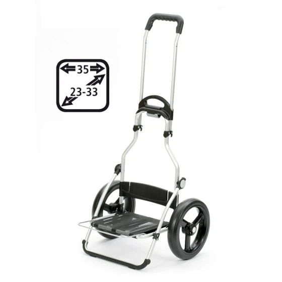 Poignée pliable / Piètement pliable / Arceau rabattable / Utilisable en remorque vélo / Chassis en aluminium / Roue à roulement à billes / Roues facilement amovibles / Roues à marche facile / Attache caddie / Réflécteurs / Poche intérieure / Imperméable / Sac facilement amovible / Dimensions du sac :34cm x55cm x20cm, soit un volume de 37 Litres / Dimensions du chassis :111cm x50cm / Charge maximum chassis :50KG / Poids du chariot : 3,8KG / FABRIQUE EN ALLEMAGNE
