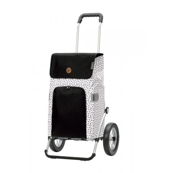 Poignée pliable / Piètement pliable / Arceau rabattable / Utilisable en remorque vélo / Chassis en aluminium / Roues facilement amovibles / Roues à marche facile / Attache caddie / Fermeture supplémentaire / Réflécteurs / Poche extérieure / Poche intérieure / Sac traité pour la pluie / Sac facilement amovible / Dimensions du sac :36cm x59cm x23cm, soit un volume de 47 Litres / Dimensions du chassis :107cm x48cm / Charge maximum chassis :50KG / Poids du chariot : 3,5KG / FABRIQUE EN ALLEMAGNE