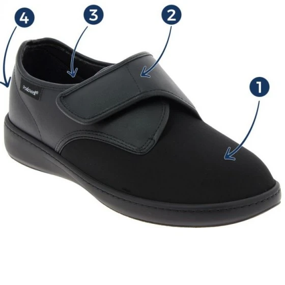 Cette chaussure de détente pour Homme ou Femme en cuir et textile est prévue pour un usage intérieur ou extérieur. Avec son avant-pied entièrement en élasthane elle donne la souplesse nécessaire en cas d’hallux-valgus ou d’orteils en griffe. Sa semelle intérieure est amovible et peut-être remplacée par une semelle sur mesure. Ce produit convient aux pathologies suivantes :