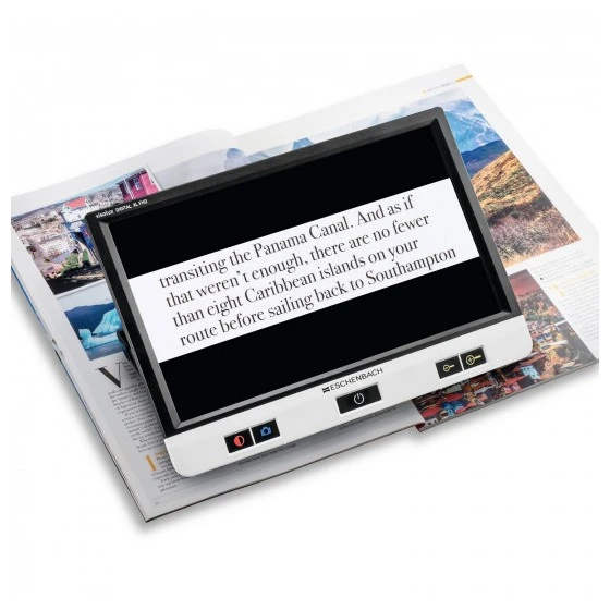 Son champ visuel est large et le rendu des couleurs naturel. Elle permet la lecture d’une colonne de journal entière. Son utilisation est intuitive. Léger, compact, robuste et avec une grande autonomie en utilisation, c’est la solution idéale en déplacement comme chez soi.
