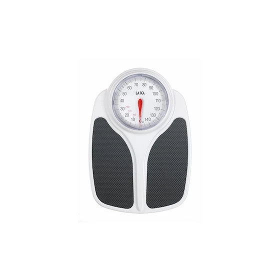 Pèse-personne mécanique avec large plateforme antidérapante. Portée 180 kg. Graduation 1 kg.