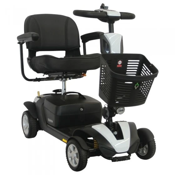 Le scooter Traveler Plus est un petit scooter qui se faufile partout. Il se démonte sans outil en 4 parties pour faciliter le transport dans un coffre de véhicule. Il est équipé d’un siège capitonné confortable, pivotant à 360° et muni d’accoudoirs escamotables. Système de débrayage roue libre. Réglage en inclinaison du guidon.