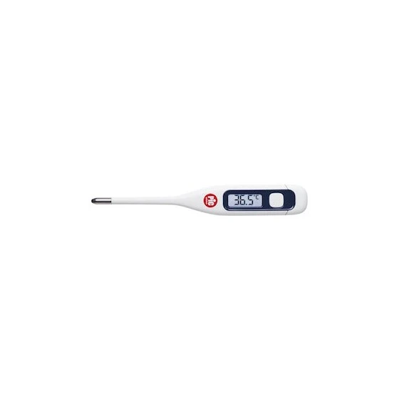 Thermomètre électronique avec sonde rigide, idéal pour la famille. Résultat fiable avec alarme fièvre. Mémoire de la dernière mesure. Etui de protection transparent.